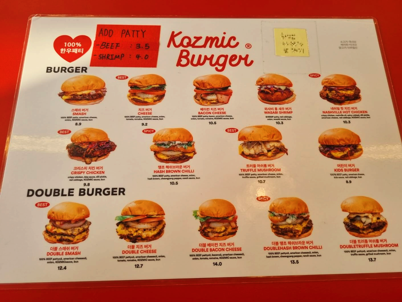 [인천송도맛집]'한우패티 수제버거' 코즈믹버거 송도점(내돈내산)