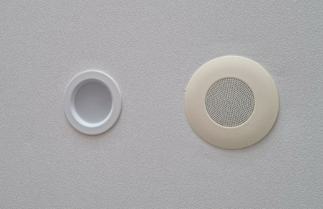 다만, 천장에 고정된 관리실 방송 스피커는 전선 때문에 떼어낼 수 없어서, 그대로 산화제를 바르고 비닐로 감쌌어요. 결과는 밝아지긴 했지만, 떼서 햇볕에 두었던 환기구들만큼 드라마틱한 변화는 아니었어요.